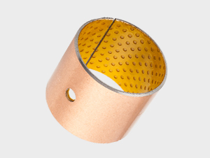 1. Self-lub. Layer POM 0.3-0.5mm. After rolling process completed, POM are filled in intersice of bronze layer, lubrication indents are stamped, which are full of oil grease, which will be removed and transferred on the mating surface, forms a physically lubricating film, which will reduced the firction coe. and protect the mating shaft.